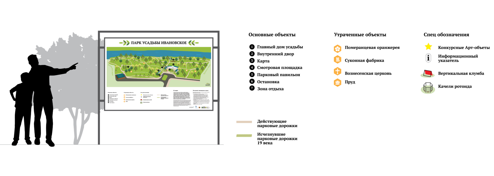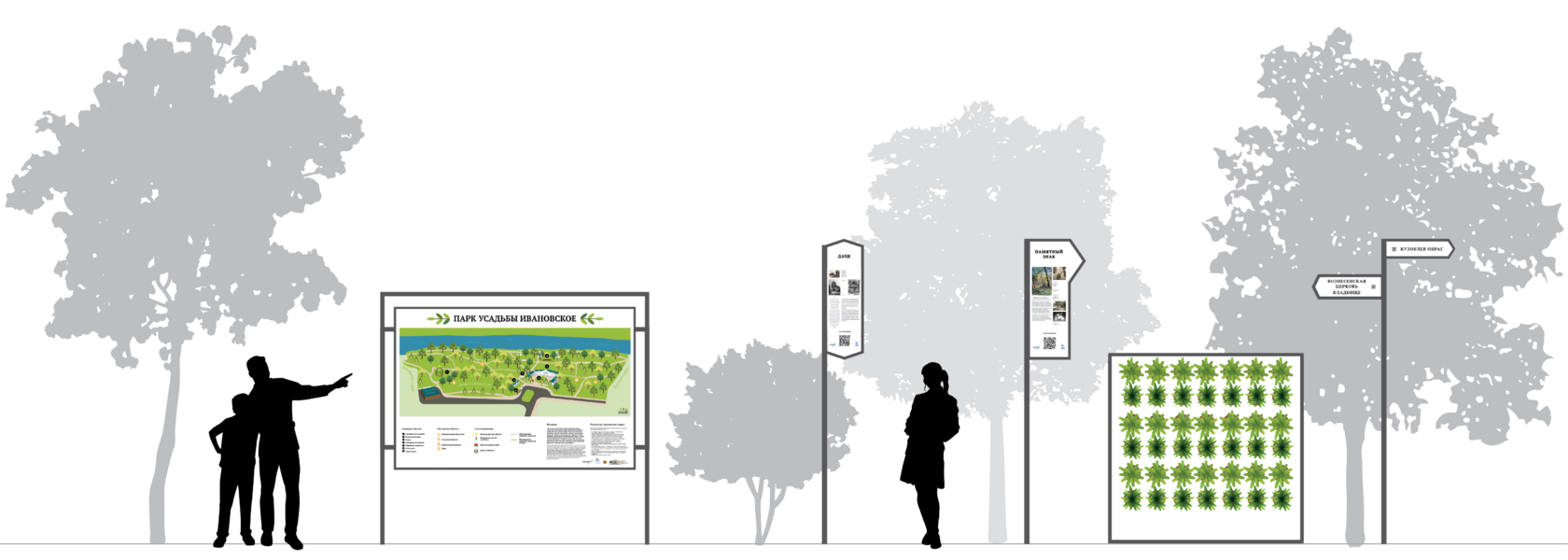Разработка карты, 8 парковых информационных стендов и 10 указателей.